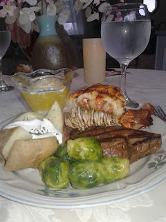 a nice dinner of homemade surf & turf with pineapple upside down cake for dessert.
